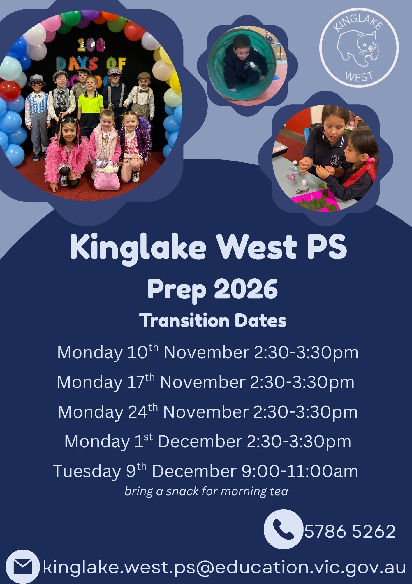 If you have any questions about Prep 2026 Transition, please contact the office on 5786 5262.